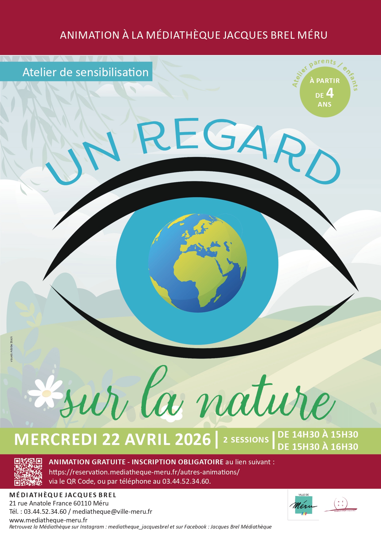 A l'occasion de la Journée Internationale de la Terre, la médiathèque vous propose un atelier de sensibilisation : Un regard sur la nature le mercredi 22 avril