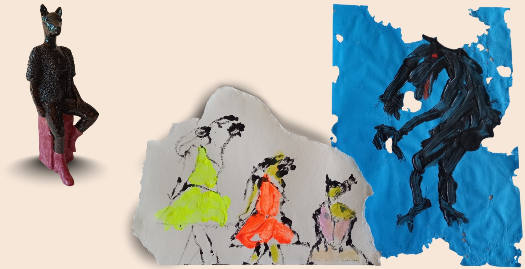 Les sculptures de Chloé Vadepied, « À quoi pensent-ils ? » dialoguent avec les peintures, les dessins et celui ou celle qui regarde.