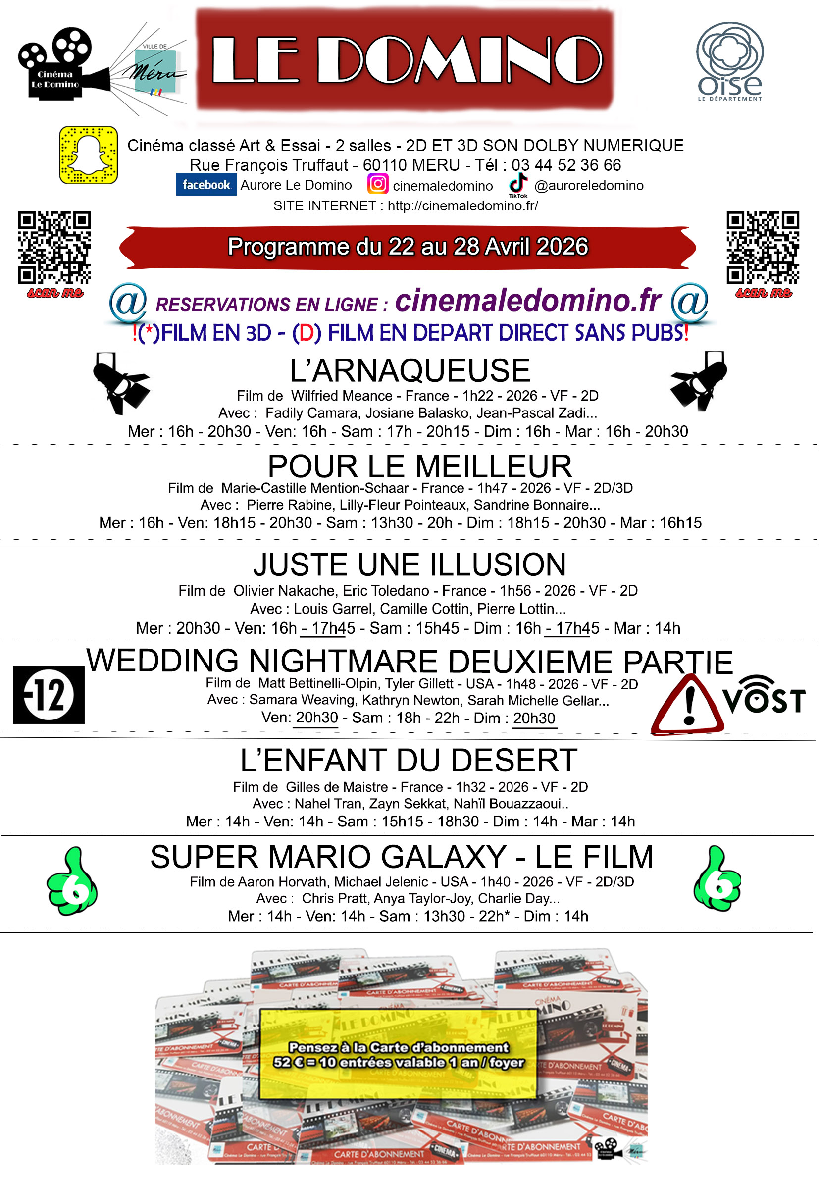 Séances du Cinéma Le Domino à Méru du du 22 au 28 avril 2026.