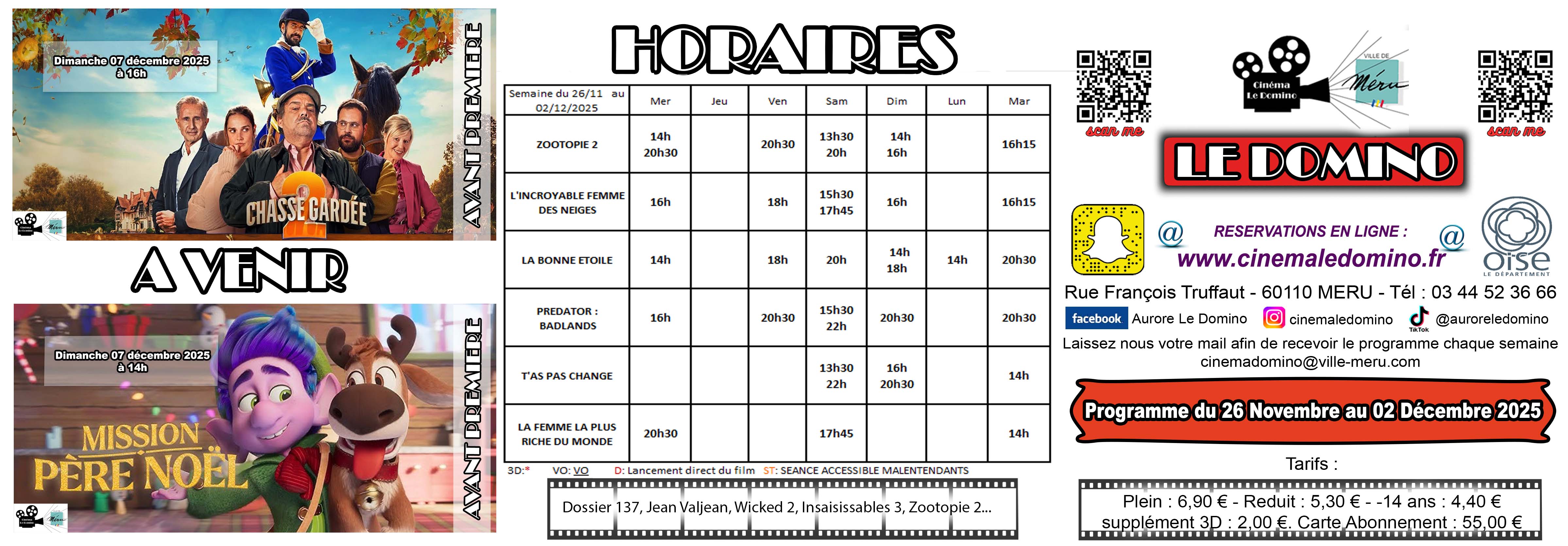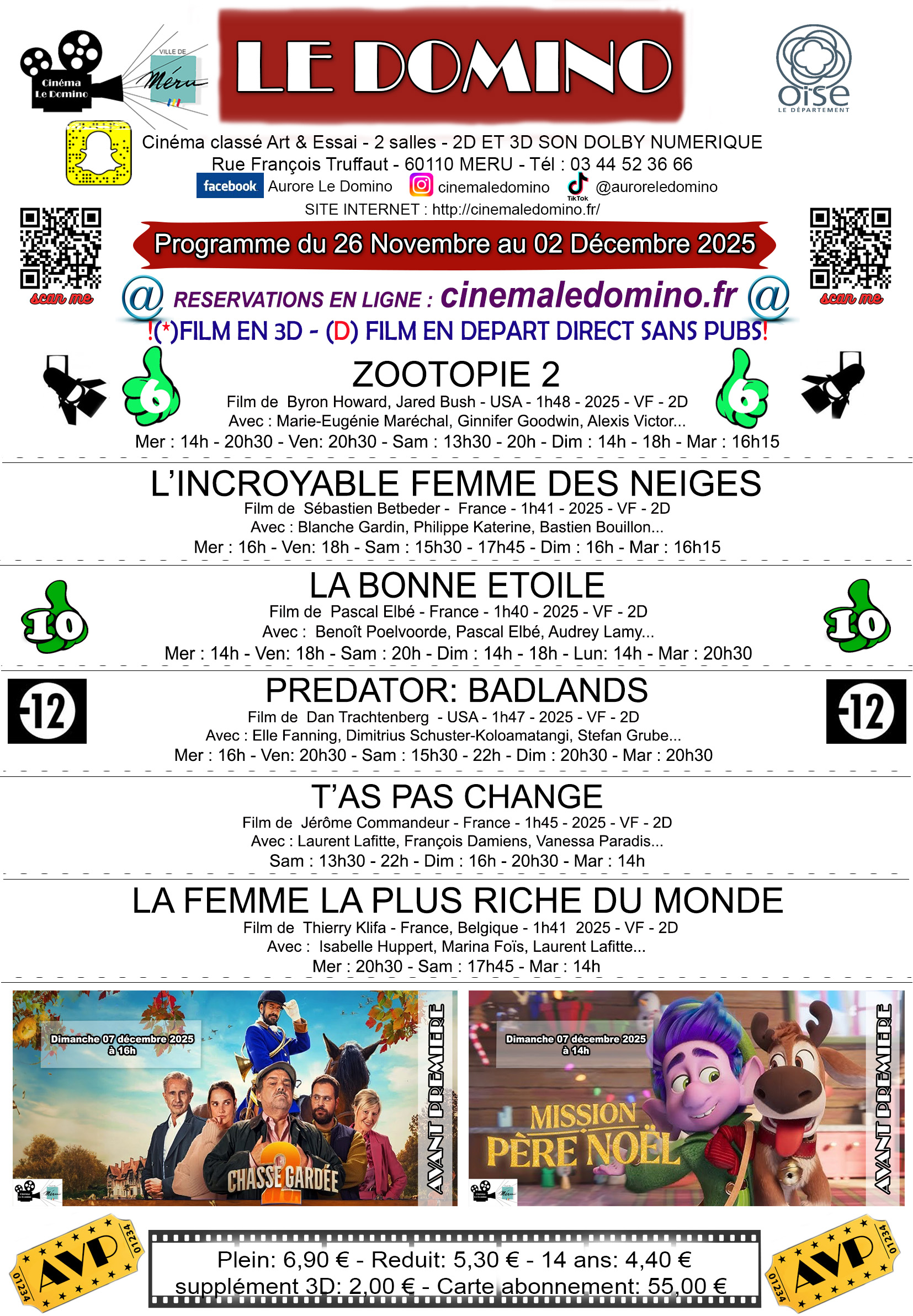 Séances du Cinéma Le Domino à Méru du 26 au 2 décembre 2025.