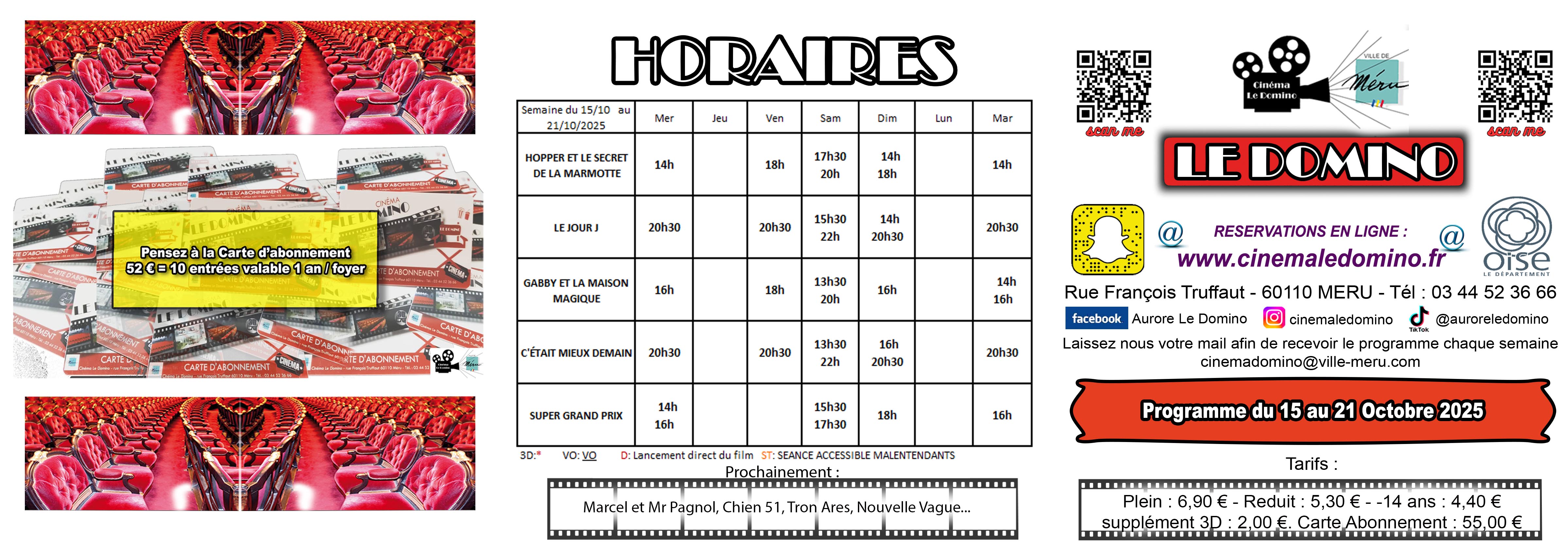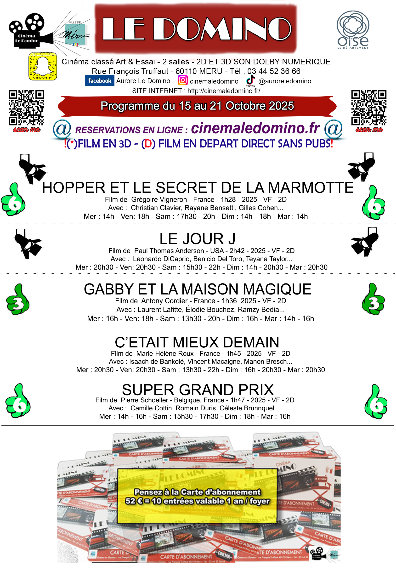 Séances du Cinéma Le Domino à Méru du 15 au 21 octobre 2025.
