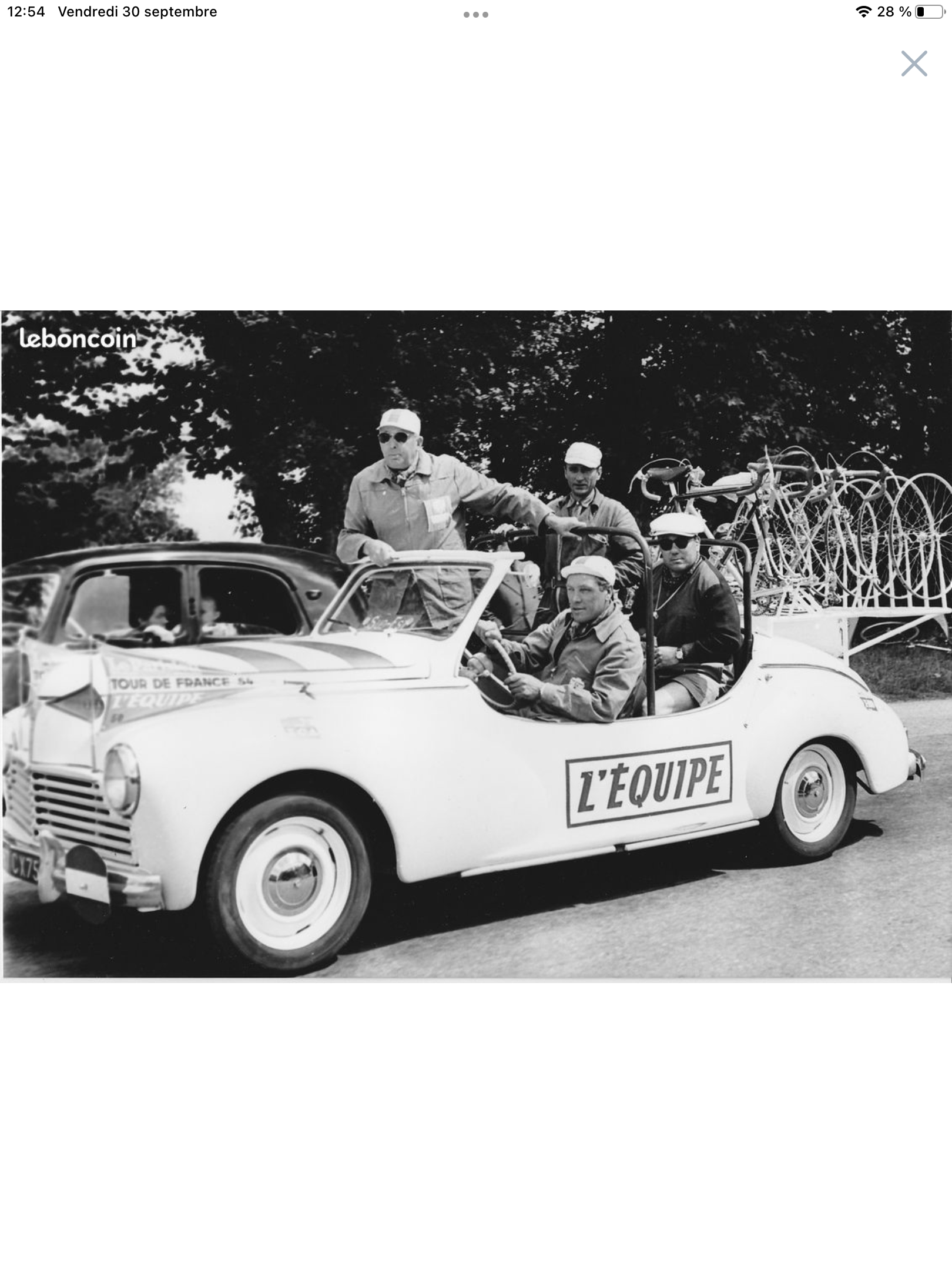 Randonnée vélos vintage 30 et 60 km, l’assistance sera assurée par des véhicules anciens des années 50 dont la mythique Peugeot 203 Tour de France !