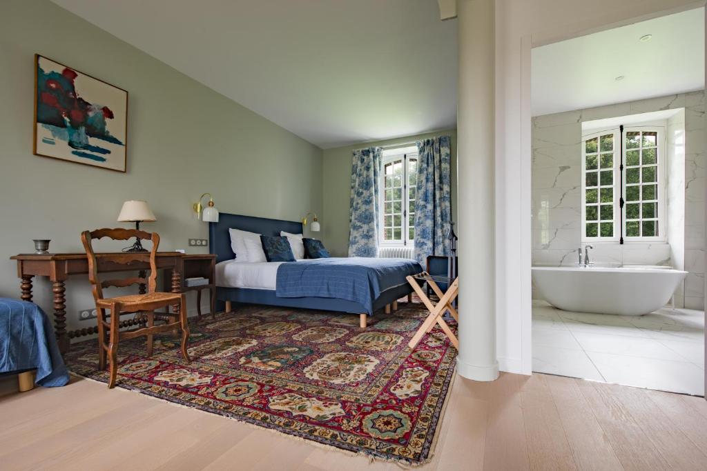 "Au vieux Château" dispose de 4 grandes chambres d'hôtes aménagées et décorées dans un univers différents. Un doux mélange d'ancien, de caractère, d'histoire et de confort moderne. Les chambres sont aménagées pour 2 ou 3 personnes , elles mesurent toutes entre 19 et 29 m², sont aménagées au 1er étage du Château, elles disposent toutes d'une décoration raffinée, de lit de 160x200 ou de 2 lits 90x200 modulables en lit 180 x200, d'une salle d'eau (une chambre avec baignoire) et Wc privatif séparé., d'une connexion internet en wifi. Les petits déjeuners vous seront servis dans le séjour ou sur la terrasse bien exposée si le temps le permet. Un salon est mis à disposition des hôtes. Clémence a été formée à l’école hôtelière de Biarritz par un chef étoilé basque, elle vous propose de découvrir une table d'hôtes de qualité axée sur les produits du marché : 2 entrées- 1 plat - Fromage - Dessert - bouteille de vin pour 2 personnes - eau plates et café. Un parking privé.