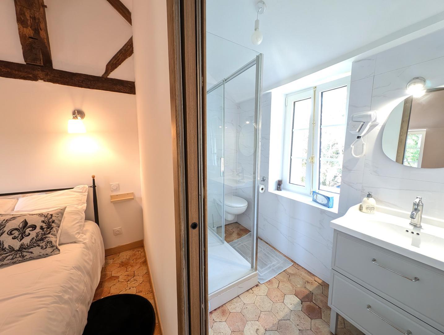 Dominique et Christèle vous accueillent dans leur maison d'hôtes "Le Pavillon des communs". Vous y vivrez une expérience authentique dans l'une des 5 chambres d'hôtes de charme, parfaitement adaptées pour des séjours en couple, en famille ou entre amis. Sur place 3 chambres peuvent accueillir 2 personnes (2 avec 1 lit 140x190cm en rez-de-chaussée et 1 avec 2 lits 80x190 cm modulables en 160x190cm au 1er étage). 2 chambres familiales pour 4 personnes (1 lit 140x190 + 2 lits 90x190 cm au 1er étage). Elles sont toutes équipées d'une salle d'eau privative avec douche moderne et WC (sèche-cheveux), TV, Wifi. Chaque matin, un petit déjeuner maison est servi dans la salle à manger ou en extérieur, face au parc arboré. Cette salle à manger vous est accessible toute la journée, vous pourrez y prendre un café ou boire un thé. La propriété s'étend sur un parc de 5000 m², idéal pour se ressourcer et profiter de la nature en toute tranquillité. Un parking est disponible sur place.