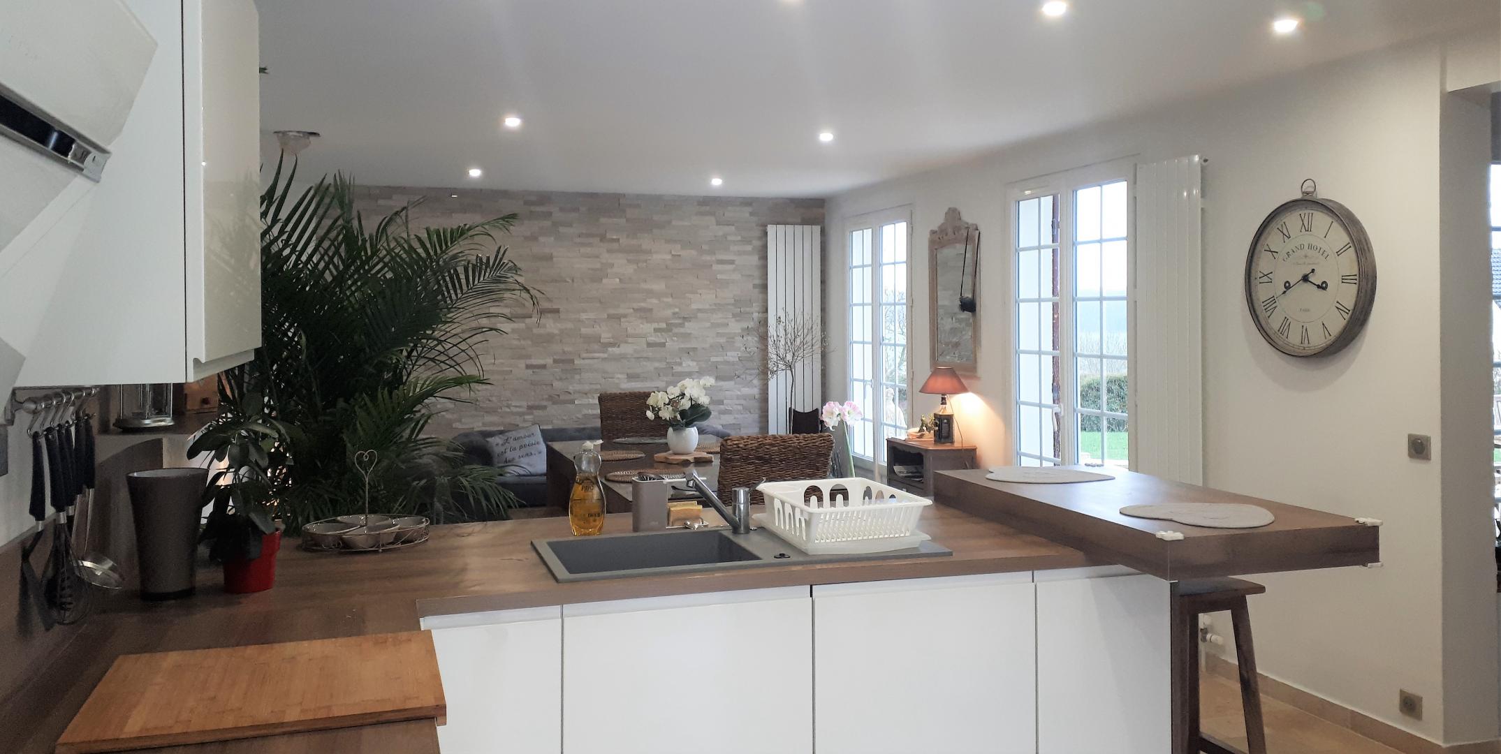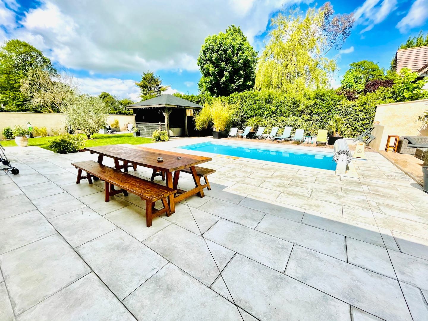 Maison indépendante de 120 m², dans un village du sud du Vexin, avec 4 chambres, 3 salles d 'eau Au rez-de-chaussée : vous disposerez d'une cuisine ouverte sur le séjour totalement équipée (lave vaisselle - four - micro-onde - cafetière), sa grande baie vitrée vous donnera directement accès à la terrasse et à la piscine chauffée. Salon TV. Une chambre 2 personnes ( lit 140x190 cm) en prolongement du salon disposant de sa salle d'eau (douche à l'italienne), Wc. A l'étage : vous profiterez de 3 chambres aménagées sous-comble : 2 chambres pour 2 personnes (160x200 cm), l'une d'elle dispose de sa propre salle d'eau (douche italienne), la dernière chambre est aménagée pour 2 personnes ( lit de 140x190cm ). Salle de bain et Wc. Jardin privatif clos (1200 m²) avec salon de jardin et barbecue à gaz de type WEBER ( gaz fournit ). Stationnement sécurisé. Table de Ping-Pong, Baby-Foot, pétanque Wifi. Lits faits et le linge de toilette inclus. Ménage fin de séjour obligatoire (150€).