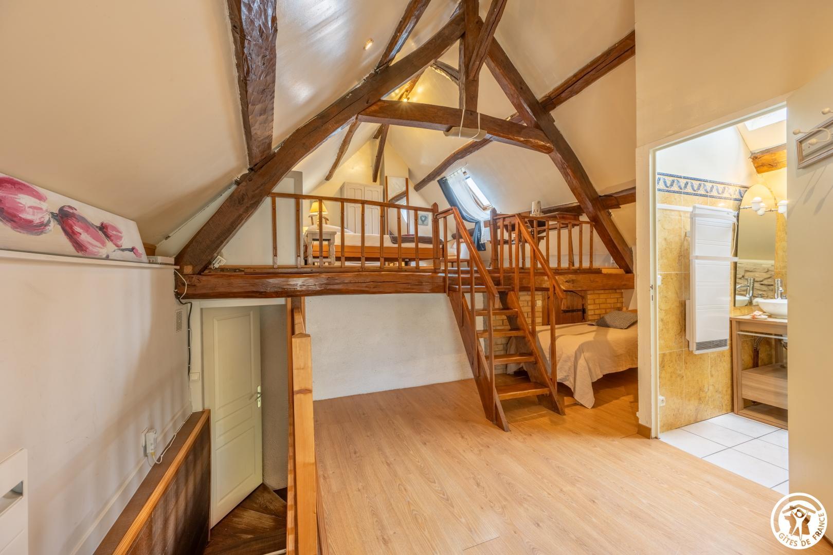 Gîte indépendant de 85m², toutes charges comprises. Au rez-de-chaussée : cuisine équipée (lave-vaisselle, lave-linge), séjour/salon avec télévision, lecteur DVD, chaine Hifi, wifi. 1er étage: 1 chambre (140x190cm) avec salle d'eau et Wc. 2ème étage: 1 chambre avec 2 lits (160x190 ; 90x190) avec salle de bain et wc privatif. Jardin de 300 m² clos avec terrasse et Barbecue. Parking dans la cour. Tout compris Gîte non adapté aux personnes à mobilité réduite.