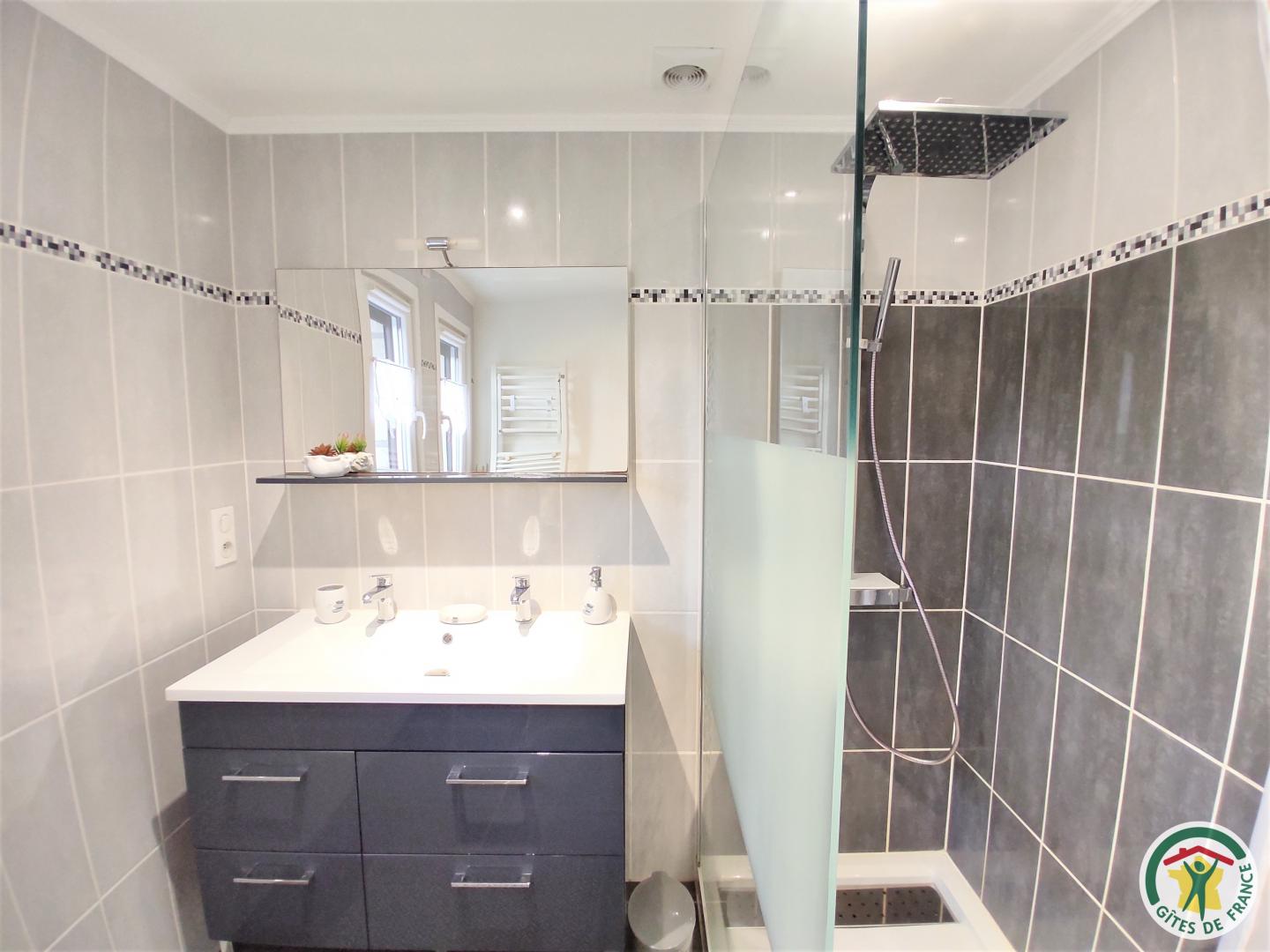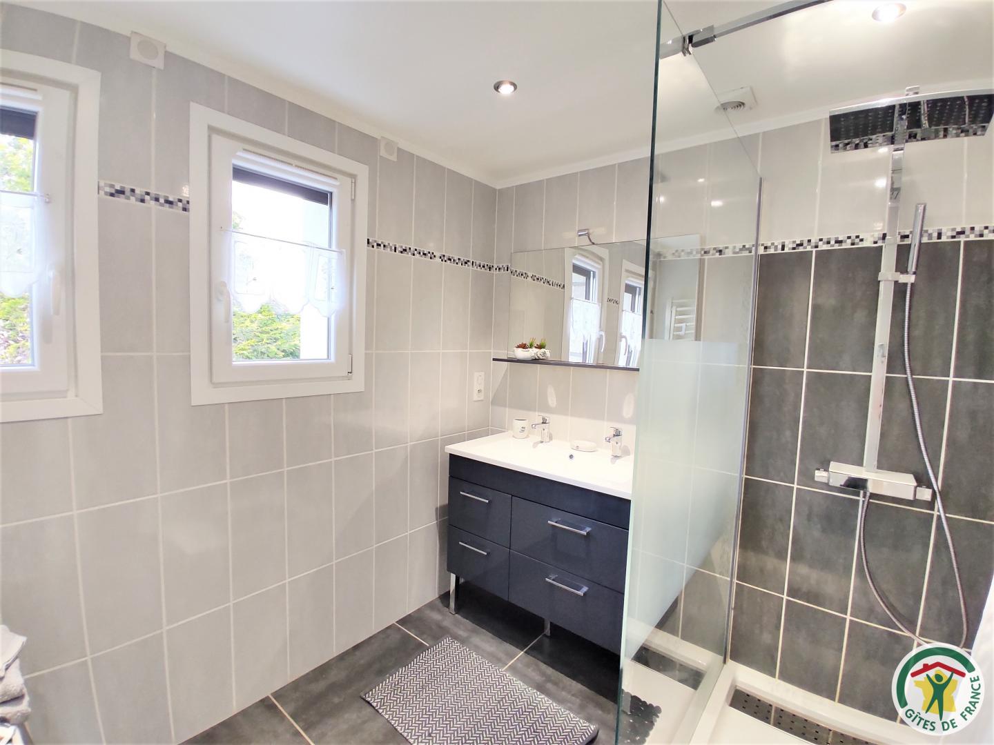 Au calme, maison lumineuse et indépendante de 80 m², située à côté de la résidence des propriétaires. Le gîte dispose d'un grand jardin clos fleuri et arboré avec une terrasse équipée d'un salon de jardin et d'un barbecue. L'accès se fait par plusieurs marches. A noter que les propriétaires ont un droit de passage devant le gîte. Sur le même niveau : Cuisine équipée indépendante, salon, séjour, canapé avec Télévision. Une chambre avec un lit 160x200, une 2ème chambre équipée de 2 lits 90x200. Salle d'eau comprenant une douche à l'italienne et une vasque. WC. Lave linge en sous-sol. Chauffage électrique. Equipement bébé sur demande. Parking privé pour plusieurs véhicules sur la propriété. Wifi. Lits faits à l'arrivée, sur demande.