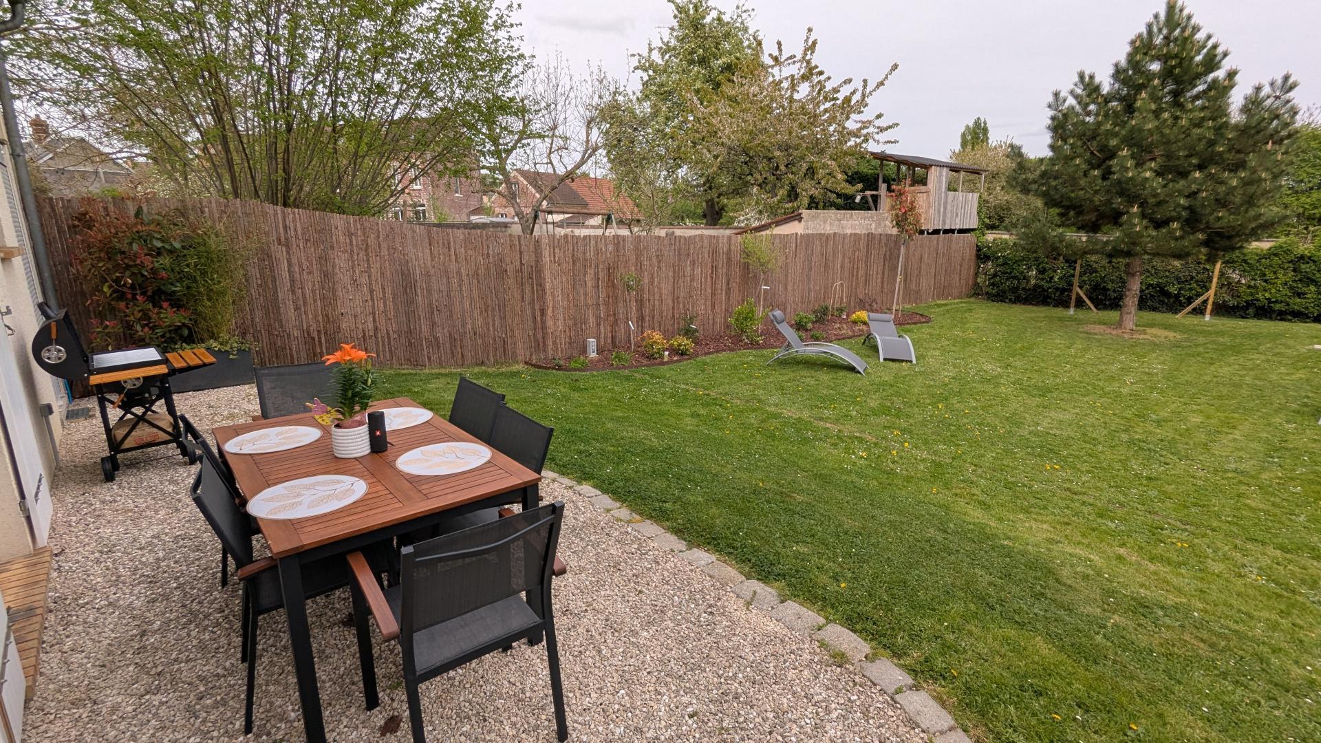 Bienvenue au Gîte "Les Marguerites", maison indépendante de 88 m² pour 6 personnes (3 chambres/6 couchages). Rez-de-chaussée : Grande pièce de vie avec salon (cheminée, bois inclus), TV grand écran (165 cm, avec Netflix), cuisine équipée (congélateur, cafetière à dosette, lave-vaisselle, four), salle d'eau avec douche, lave-linge et sèche-linge. Étage : 3 chambres avec lits modulables (2 lits 90x200 cm ou 1 lit 180x200 cm), salle de bain avec baignoire d'angle et WC. Le gîte dispose d'une pompe à chaleur avec climatisation. Jardin clos de 700 m² avec salon de jardin, barbecue et table de ping-pong. Parking privé (3 voitures). Équipements supplémentaires : matériel bébé (lits, chaises hautes, barrière de sécurité), recharge véhicule électrique prise Green'up, en supplément. Lits faits, linge de maison et de toilette, ménage de fin de séjour et chauffage inclus. Pour garantir la tranquillité de tous, les soirées festives et événements bruyants ne sont pas autorisés dans le gîte.