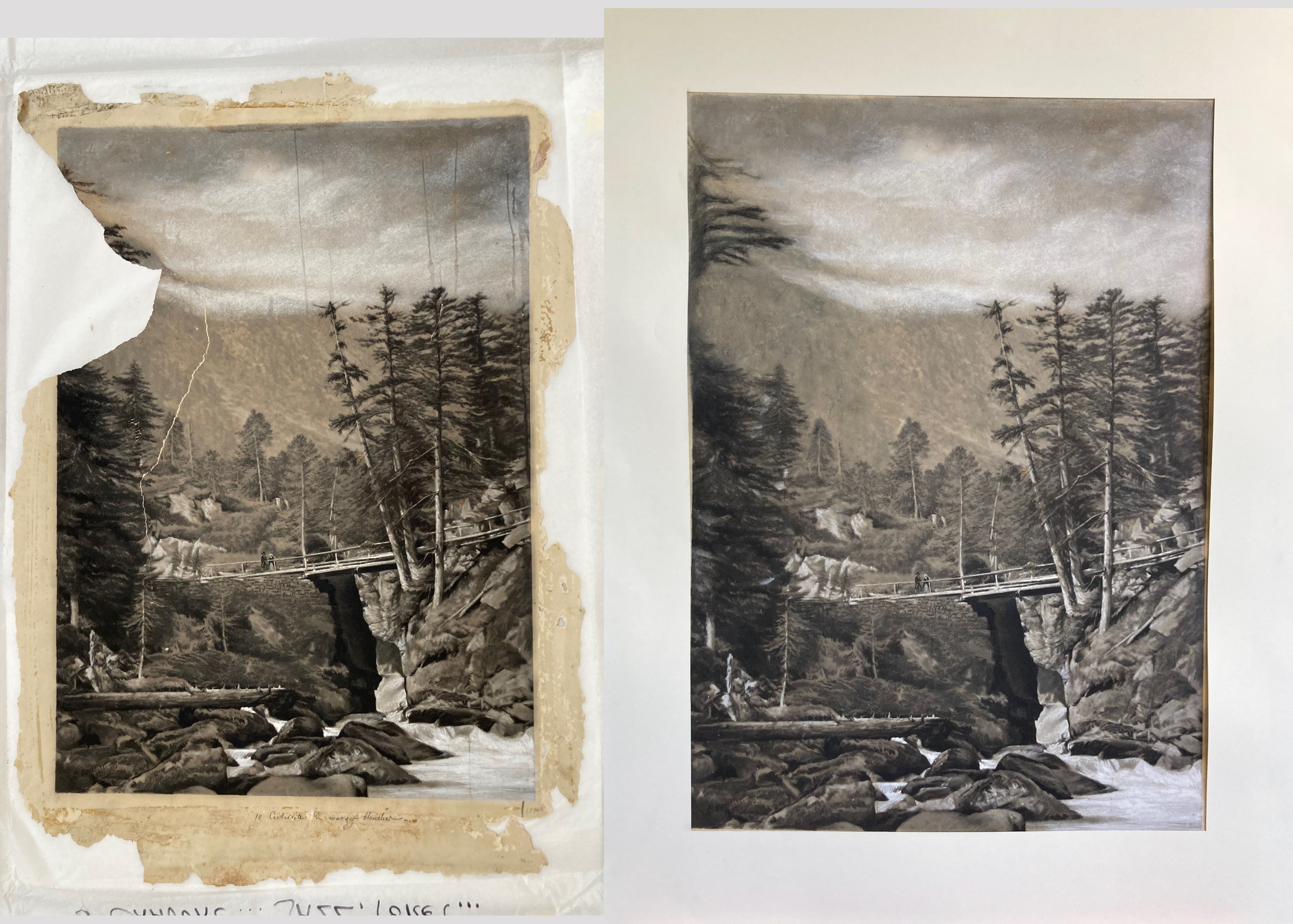 • restauration des gravures et dessins et documents réalisés sur papier (estames, plans, cartes ...)